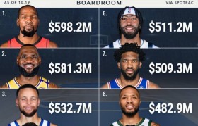 10月20日,美媒Boardroom报道,根据薪资网站Spotrac的数据,列出了NBA历史上总薪资...